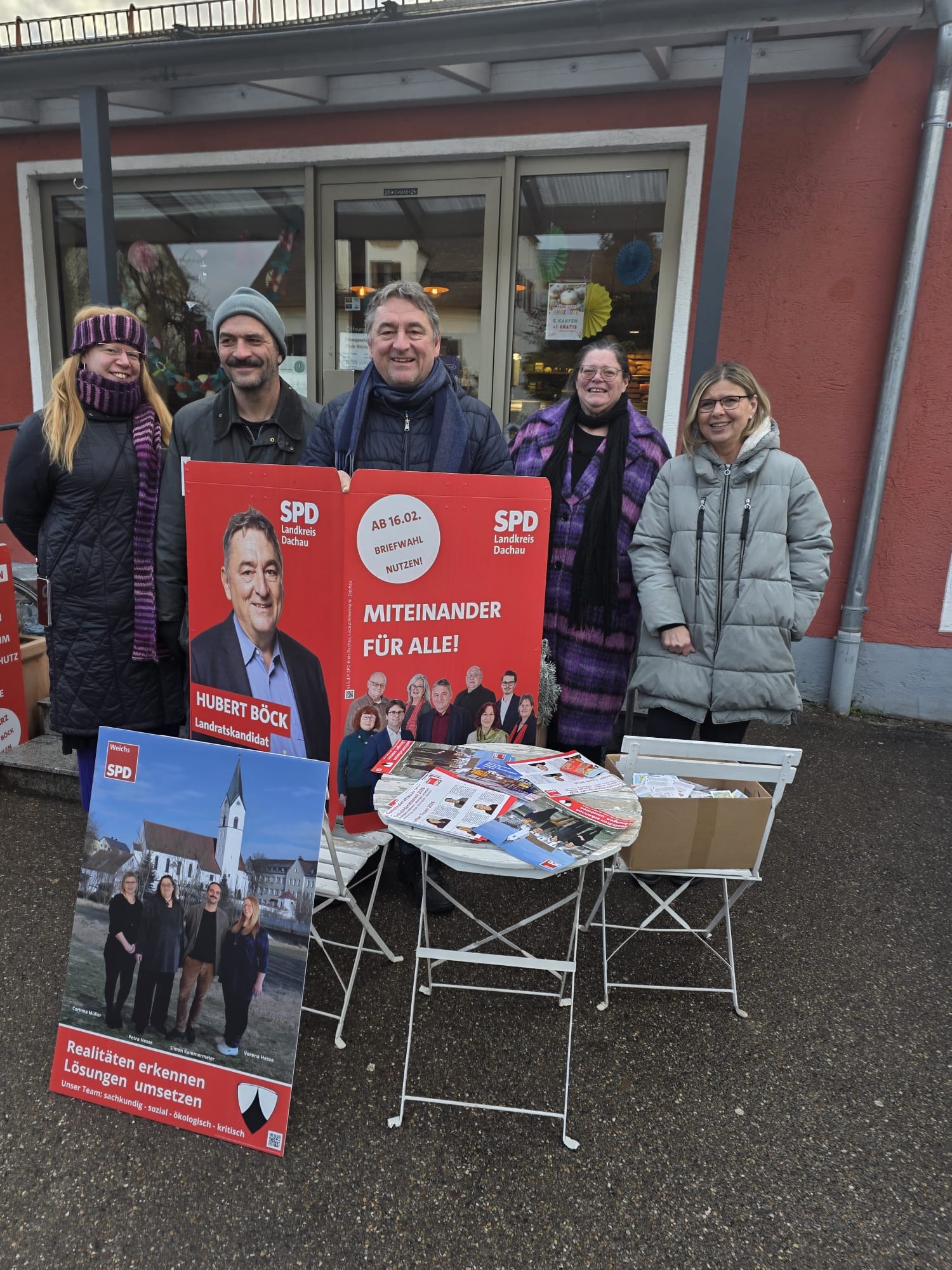 Unsere Kandidaten mit dem Landratskandidaten Hubert Böck beim Wahlkampf im Februar am Wahlkampfstand